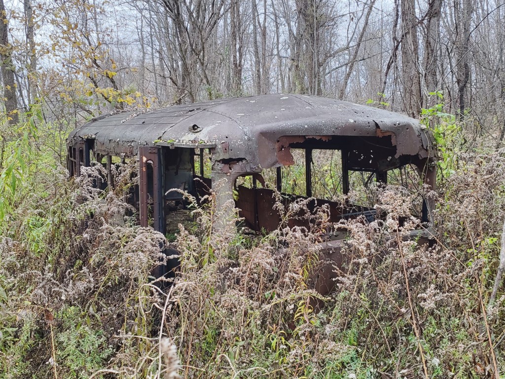 An anonymous visitor sent these, they are of a decrepitly deteriorated bus along the side of the Oswego County Recreational Trail near the Fulton end.